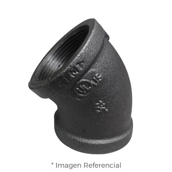 Conexiones confiables para tu sistema de tuberías: CODO (ELBOW) REFORZADO DE FIERRO MALEABLE NEGRO A197 X 45 GRADOS CLASE 150 CON ROSCA NPT (B1.20.1) CERTIFICADO UL/FM CIFUNSA