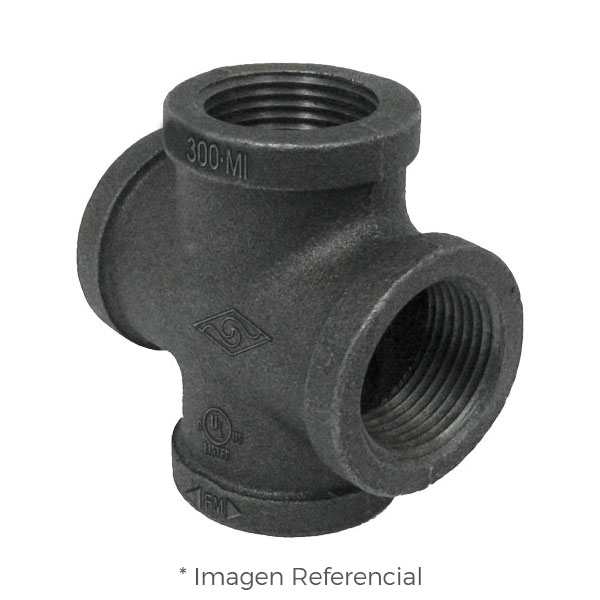La CRUZ ESTANDAR (CROSS EQUAL) CON REFUERZO FIERRO MALEABLE NEGRO A197 CLASE 300 ROSCA NPT (B1.20.1) CERTIFICACION UL/FM MOD. 180 MECH (JINAN MEIDE)