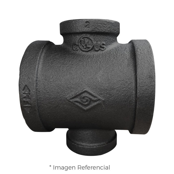 CRUZ REDUCTORA EN DOS EXTREMOS (REDUCING CROSS) CON REFUERZO FIERRO MALEABLE NEGRO A197 CLASE 150 ROSCA NPT (B1.20.1) CERTIFICACION UL/FM MOD. 180R MECH (JINAN MEIDE)