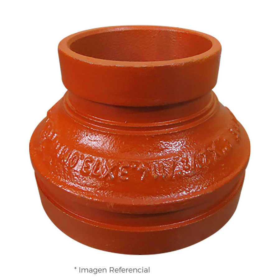 CARACTERÍSTICAS DEL PRODUCTO ATRIBUTO VALOR Tipo de Conexion Reducción Concéntrica Material Fierro Ductil A536 Normas UL / FM Sistema Tipo Victaulic Máxima Presión de Trabajo 500 PSIG Usos Agua CERTIFICACIONES: Ver certificación Ver certificación