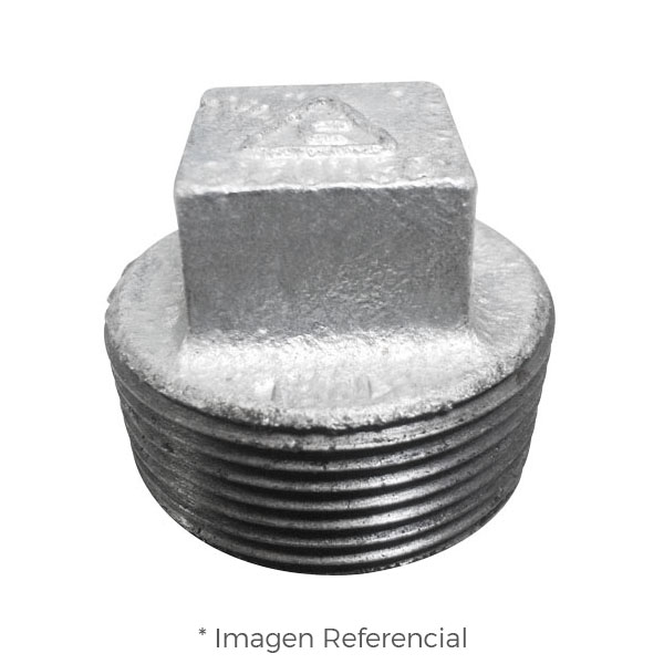 TAPON MACHO CABEZA CUADRADA (CORED PLUG) FIERRO MALEABLE GALVANIZADO A197 CLASE 150/300 ROSCA NPT (B1.20.1) CERTIFICACION UL/FM CIFUNSA