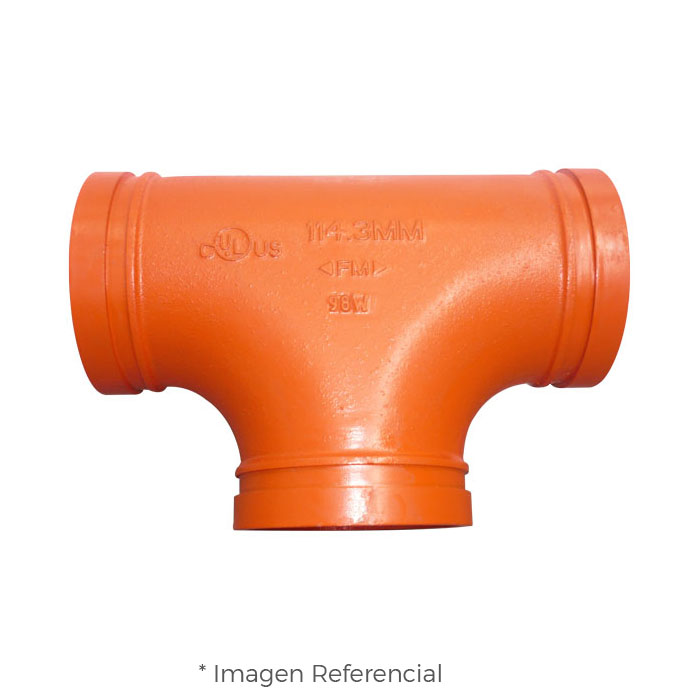 - Sistema: El sistema del Tee Ranurada Estandar de Fierro Ductil ASTM A536 con Certificación UL/FM Modelo 130 MECH (JINAN MEIDE) es del tipo Victaulic con un sistema de conexión ranurado que facilita su instalación y mantenimiento.
